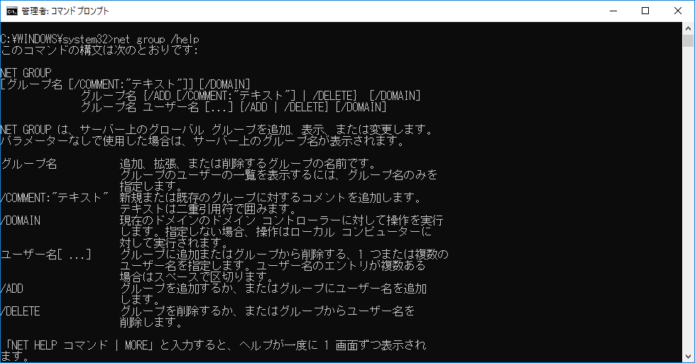 net groupコマンドとはローカル・コンピュータもしくはドメイン・コントローラ上に登録されているグループ・アカウントに関する情報の表示/設定するコマンドである。
